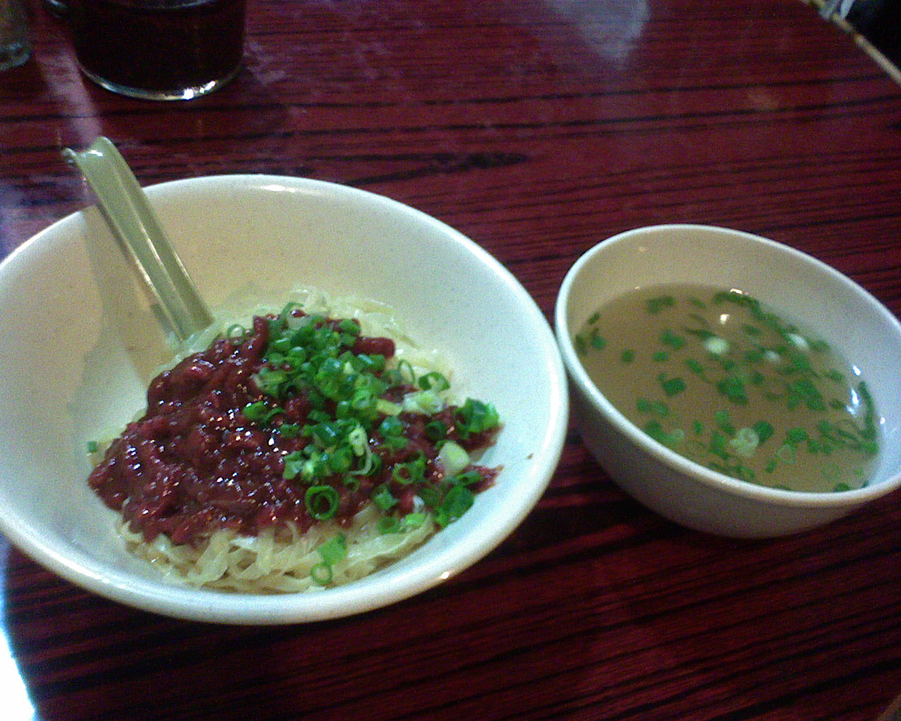 我最愛在寒天吃它的炸醬麵。麵是乾撈粗麵,跟北方食法,湯另上。小辣。 其炸醬為自家配方炒製。(常見員工在檔口製作。)