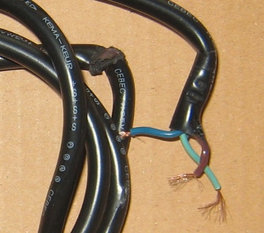 圖中所見的線,並不記得跟甚麼東西送來。反正每人家中都有一堆,隨便拿來便用。看,圖中的線中段「燒溶」了,若不是及時關機,後果堪虞。
