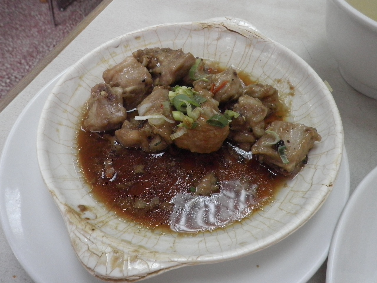 我為何明知還會幫趁呢? 那幾塊蒸排骨的確合格,豬肉有甘味。(希望還有人記得豬肉那甘味。) 只要肉質不太差,做好這個菜有何難? 可是在今天這個要求不是間間做得到,我別無選擇。 (附近有間叫「新匯江」的茶記,位置佳,裝修好,寬淌,但食物太大路了。)