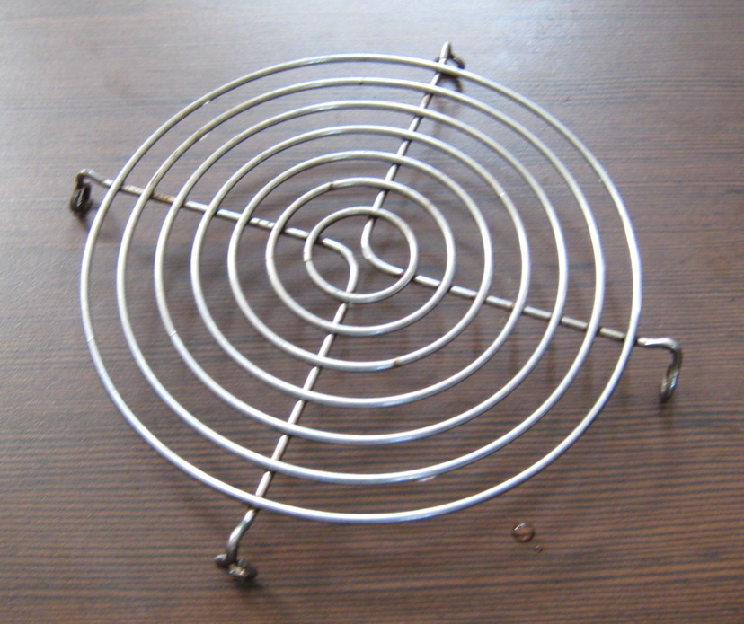 今日示範,將一個電腦風扇的保護柵改成蒸架。 我只是將四邊的「腳」屈了,便成了一個極低的蒸架。