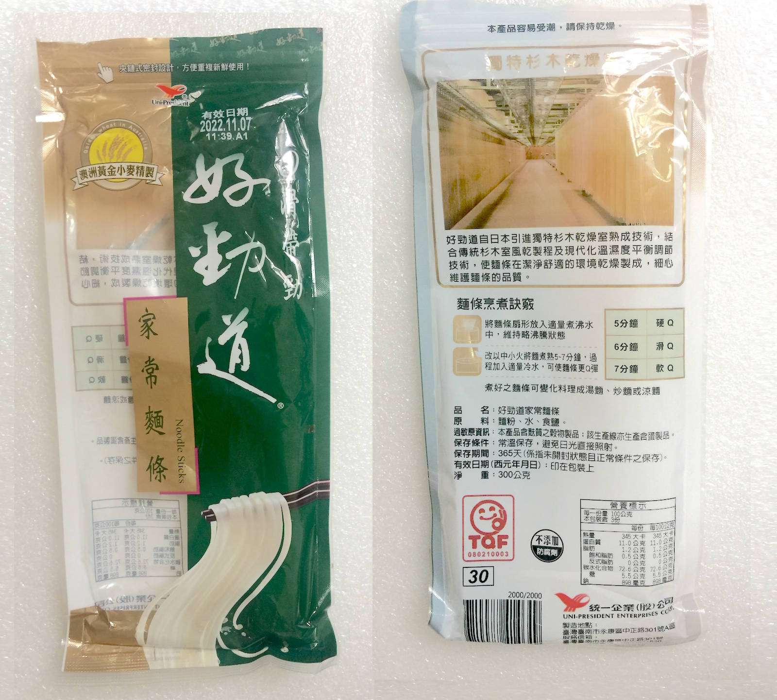 這個「台灣好勁道麵條」,包裝寫明用日本特殊技術乾燥,就買來試試吧。($17) 回家試煮,的確有嚼勁。