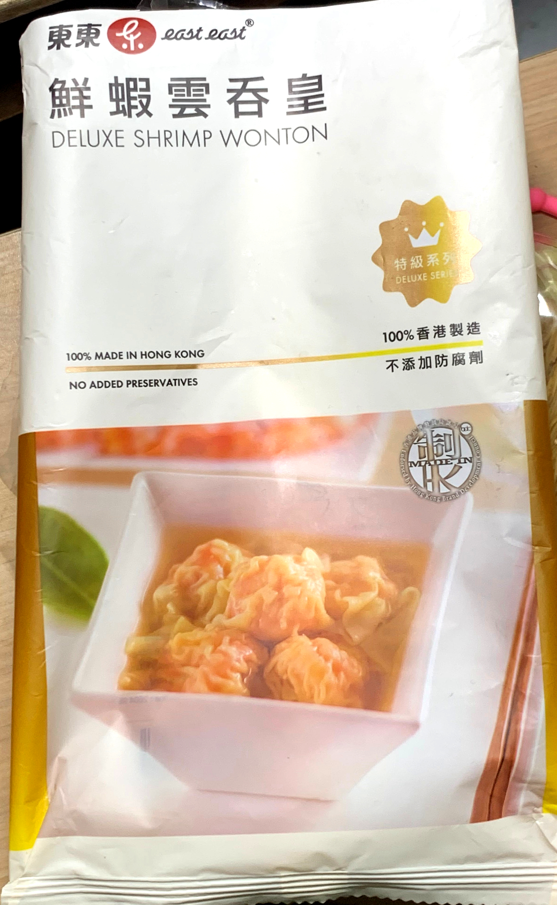 東東轉戰包裝食品,2024年在超市碰見它,正優惠價,便姑且一試,味道可以,便多買來吃了。(經常有優惠,約十五六元一包,八隻)。我用蝦子麪配來吃,覺得比市面雲吞麪要好,我受不加了鹼水所謂彈牙其實是硬的廣東麪。