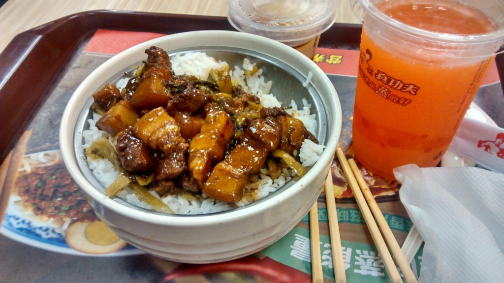最愛的豬腩肉。 多年前這真功夫店在深圳羅湖火車站上層,走到盡頭。內地沒有港式飲食禁忌,肉不肥不好吃,這樣子是正常而地道的。(2024年,近年復興了西方生胴飲食,這肥肉絕不是罪,反而下面的澱粉質 – 米飯有問題,那飲品更要考慮考慮) 2014-04-19深圳真功夫
